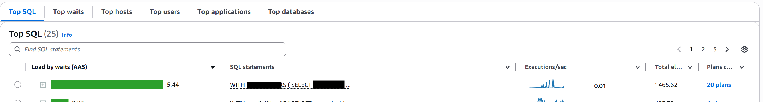 We then scroll down to the “Top SQL” tab and see that our most considerable wait (taking up 5.44% of the database load at the time of this screenshot, a few hours after the fix) is our target SQL query.